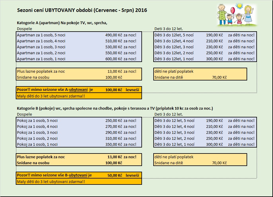 Pro organizovanou dětskou rekreaci - např. školy a školky v přírodě předkládáme speciální nabídku.