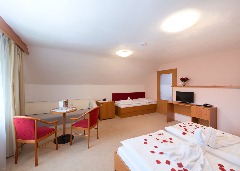 Hotel: 1 - 5 lůžkové pokoje, 1 x apartmá, 1 bezbariérový pokoj