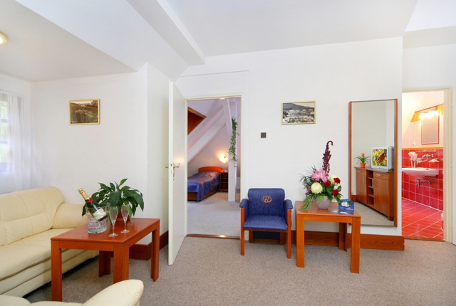 V pokojích a apartmánech s vlastním sociálním zařízením, TV, Sat, Tel., minibar, trezor, Wi-Fi.