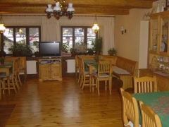 V přízemí penzionu je vybavená kuchyň pro hosty, jídelna, společenská