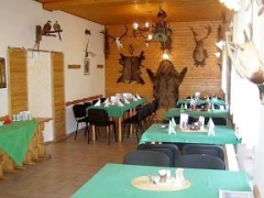 Posezení v příjemném prostředí myslivecké restaurace (26 míst) a valašské izby (36 míst) – speciality ze zvěřiny a ryb, velký