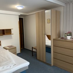 Nabízíme ubytování ve dvoulůžkových až pětilůžkových pokojích s možností přistýlky. Každý pokoj má koupelnu se sprchovým koutem a WC. Součástí všech pokojů je televize a wifi připojení.