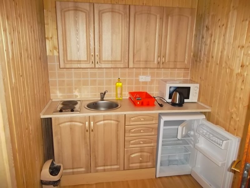 V horním patře je k dispozici šest apartmánů s koupelnou, WC, televizí, vlastní kuchyňkou a jídelnou. Taktéž je zde k dispozici velká herna a společenská místnost.