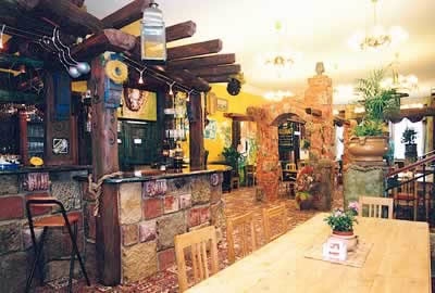 Restaurace s barem, kavárna a salónek a letní terasa.