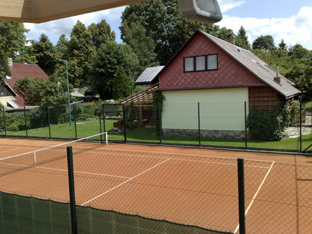 Tenisový kurt u objektu. Automatické zavlažování. Možnost zapůjčení míčků a raket. Vedle kurtu jsou ruské kuželky. Vše je zahrnuto v ceně.