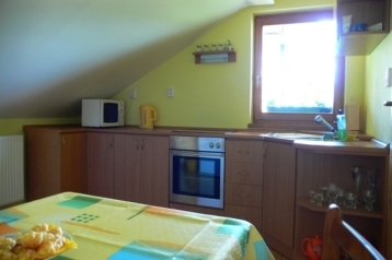 Časť B: 3x 2-lôžková izba s dvoma prístelkami (rozkladacia pohovka), TV v každej izbe, 1x kúpeľňa so sprchovacím kútom, vaňou a WC, 1x WC samostatné, kuchyňa (elektrický sporák, elektrická rúra, chladnička s výparníkom, MV rúra, rýchlovarná kanvica), terasa, záhradný gril.