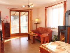 Kapacita objektu 6 osob + postýlka pro dítě do 3 let zdarma. Jídelna, krbová kamna, jídelní stůl a TV-satelit, internetová přípojka za poplatek 80 Kč týden, z obývacího pokoje vstup ke krytému zahradnímu posezení s krbem a zahradním nábytkem.