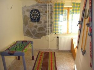 - na prízemí kamennú pivnicu s krbom, malú herňu a WC