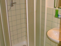Koupelna se sprchovým koutem, WC a umyvadlem