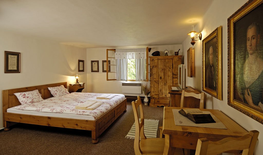 Podkrovní pokoje v hlavní budově mlýna nabízí stylové zázemí s veškerým komfortem, vč. TV, internetové přípojky a sociálního zařízení. Pro rodiny s dětmi či větší skupinu návštěvníků, kteří mají rádi své soukromí, je ideální soubor samostatných dřevěných apartmánových chat (chaty jsou pro 2 osoby s možností přistýlky). I zde je kromě sociálního zařízení k dispozici televizní přípojka.