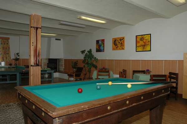 Jídelna je vybavená televizi, satelitem a kachlovými kamny.