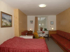 Ubytování v sedmi 3 - 7 lůžkových pokojích s vlastním sociálním zařízením.
