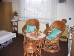 Apartmán - dvoulůžková ložnice, obývací pokoj s možností přistýlky, TV se satelitem, koupelna se sprchovým koutem a WC, kompletně vybavená kuchyňka.