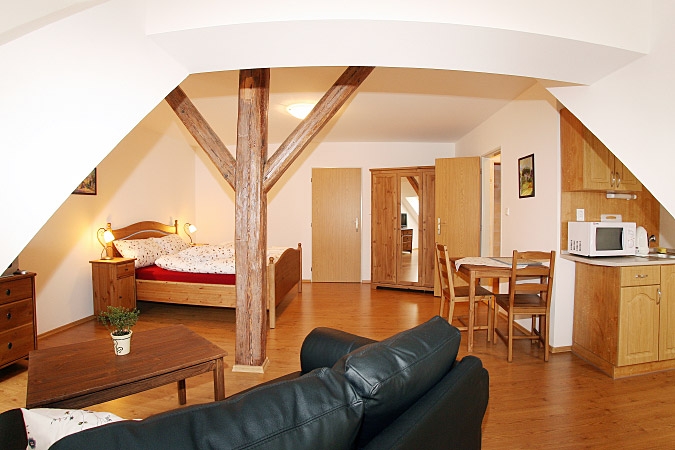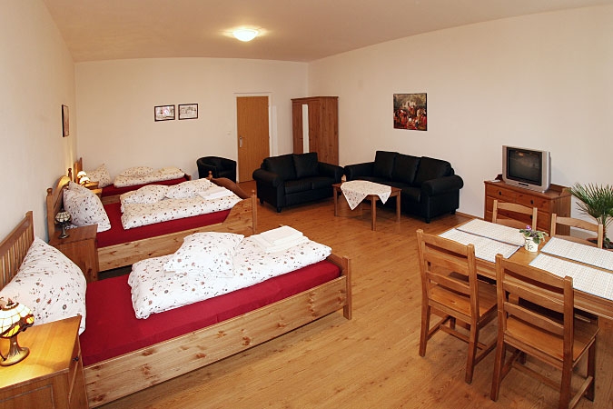 Mimořádně prostorné 1-4 lůžkové pokoje i rodinné apartmány jsou vybaveny vlastní kuchyňkou včetně itineráře a elektrických spotřebičů. Samozřejmostí je též snadný přístup k bezdrátové síti WiFi internetu ...