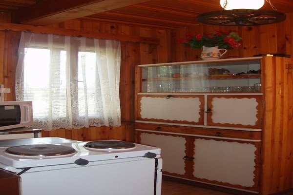 Stravování: kompletne vybavená kuchyňa s teplou vodou, mikrovlnnou rúrou, chladničkou, elektrickou dvojplatničkou a sporákom na tuhé palivo. V jedálenskej časti je krb.