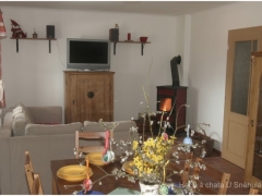 Zde je prostor pro jídelní stoly a pohodlný gauč odkud můžete sledovat LCD TV, SAT, DVD nebo poslouchat hudbu z Hi–Fi věže vybavenou mp3 přehrávačem.