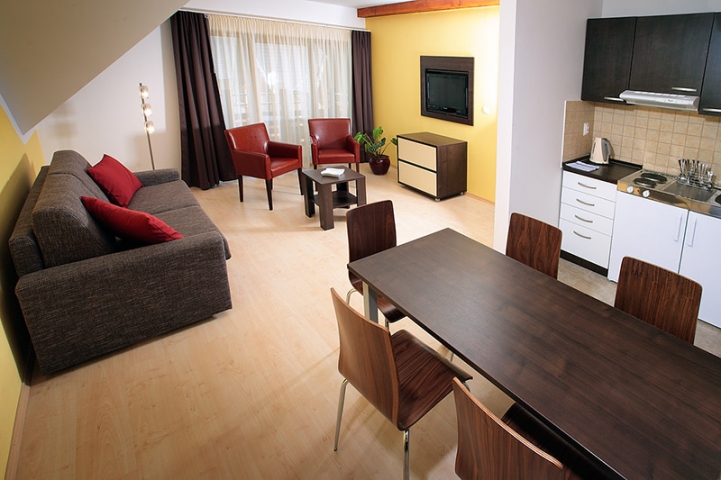 Ubytování nabízí dvě postele s možností přistýlky. Některé s balkónem jiné v podkroví. Vybavení s LCD TV, telefónem, internetem, kuchyňským koutem a koupelnou je samozřejmostí.