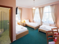 Všechny pokoje a apartmány s vlastní koupelnou se sprchovým koutem a WC (hygienické potřeby jsou samozřejmostí), satelitní LCD TV, rychlovarná konvice, káva a čaj denně zdarma, WiFi 15 Mb/s zdrama, počítač připojený k internetu v mezipatře hotelu, k dispozici je automatická pračka a žehlicí potřeby.