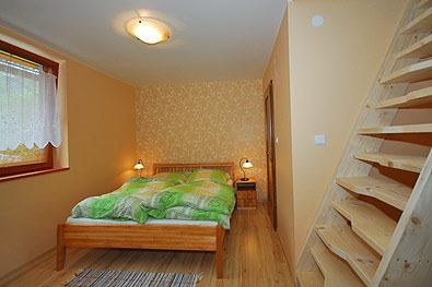 Má 3 spálne. Prvá izba je 4 lôžková - manželská posteľ a poschodová posteľ. V izbe je kúpelňa. Druhá izba je dvojlôžková - manželská posteľ. V izbe je kúpelňa. Z izby sa ide rebríkom do mezonetovej izby, kde su 3 samostatné lôžka. V spoločenskej miestnosti je rozkladací gauč, kde môžu spať 2 osoby.