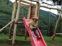 Děti jistě uvítají vybavené dětské hřiště s lanovou a lezeckou stěnou, skluzavkou a houpačkou, rádi si zaskáčou na trampolíně ( 3m) a pohrají na pískovišti.