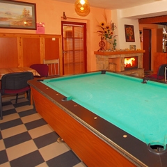 K dizpozícii je aj ďalšia spoločenská miestnosť s jedálňou, biliardom, stolný futball, elektronické šípky a krbom kde sa dá príjemne tráviť čas najmä v sychravom počasí v kruhu svojej rodiny, či priateľov.