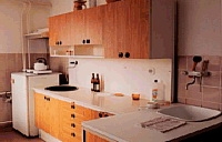 K dispozici společenská místnost, která zároveň slouží jako jídelna, vybavená kuchyňka – lednice, vařič, rychlovarná konvice.