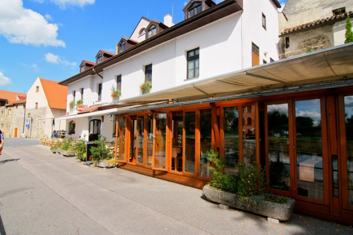 Hotel má vlastní restauraci pro 60 osob, zimní zahradu, kde je 20 míst (lze využít i jako salónek), příjemné je posezení na letní terase s výhledem na řeku Malši. Dále hosté mohou posedět u baru, v létě je možné grilování. Vaříme českou a mezinárodní kuchyni.