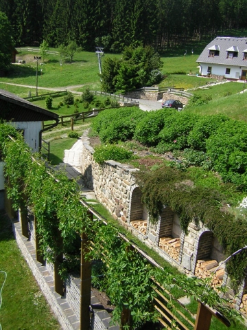 V letním období posezení na terase nebo u venkovního krbu s překrásným výhledem do údolí.