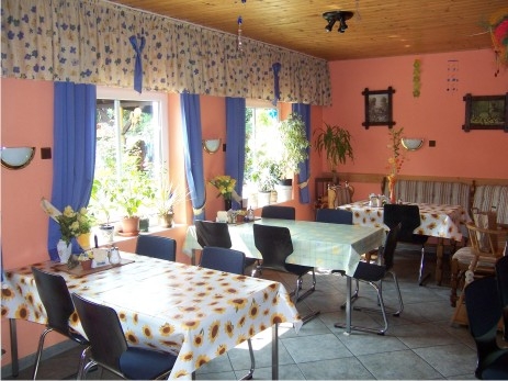 V přízemí nové přístavby je společenská místnost s jídelním posezením, krbovými kamny a el. šipkami, 2xWC, v prvním patře se nachází dva apartmány, každý s vlastním soc. zařízením ( WC + sprchový kout ). V 1. apartmánu 2lůžkový pokoj s přistýlkou a dalšími 2 lůžky v šikmině přístupné po schůdcích, ve 2. apartmánu dva 2lůžkové pokoje. V podkroví ve zrekonstruované části se nachází společenská místnost s posezením, BTV a kuchyňským koutem vybaveným el. dvouvařičem, chladničkou, kávovarem, varnou konvicí, nádobím. Dále 2 apartmány. V 1. apartmánu dvě 2 lůžkové ložnice, jedna se dvěma přistýlkami, WC a sprcha ve 2. apartmánu, dvě 2lůžkové ložnice, jedna s přistýlkou, samostatná koupelna a WC a sprchovým koutem. Vytápění objektu plynové, ohřev vody plyn. karmou. U penzionu oplocená zahrada s otevřenou terasou s posezením. Dále možnost posezení u venkovního krbu nebo pod pergolou. Pro děti pískoviště, houpačka a malé travnaté hřiště.