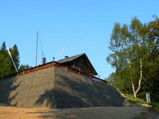 Rekonstruovaná kamenná rozhledna z roku 1897 s výhledem na jihozápadní Krušnohoří. Doporučeným výcho...