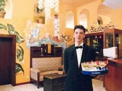 Restaurace s barem, kavárna a salónek a letní terasa.