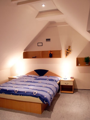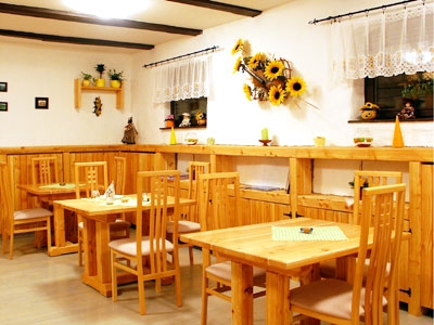 Pokoje jsou podkrovní, jeden pokoj je v přízemí. Každý pokoj má vlastní sociální zařízení, kuchyňský kout vybavený nádobím, vařičem, ledničkou a rychlovarnou konvicí. Na pokoji je možnost vaření i stolování. Na každém pokoji je TV-SAT, rádiobudík, telefon, internetová přípojka. Hostům je k dispozici společenská místnost, altánek s možností grilování, sauna, místnost na odkládání kol, stůl na stolní tenis, sportovní nářadí, společenské hry. Podáváme snídaně formou bufetového stolu. Parkování je zdarma v uzavřeném dvoře.