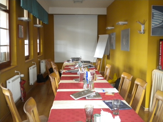 výhodou hlavní konferenční místnosti je možnost vjezdu autem až dovnitř konferenční místnosti a také vhodné podmínky pro předvádění větší