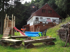 Okolí chaty je zatravněná plocha cca 700 m² přecházející v les. Přímo u chaty se nachází bazén (3m), pískoviště, dětské hřiště,trampolína a ohniště. Dětské hřiště je vybaveno provazovou a lezeckou stěnou, skluzavkou a houpačkou. Parkování v létě přímo u objektu až pro osm aut. V zimě parkování cca 150 metrů od objektu u cesty.