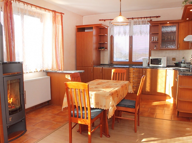 Kapacita objektu 6 osob + postýlka pro dítě do 3 let zdarma. Jídelna, krbová kamna, jídelní stůl a TV-satelit, internetová přípojka za poplatek 80 Kč týden, z obývacího pokoje vstup ke krytému zahradnímu posezení s krbem a zahradním nábytkem.