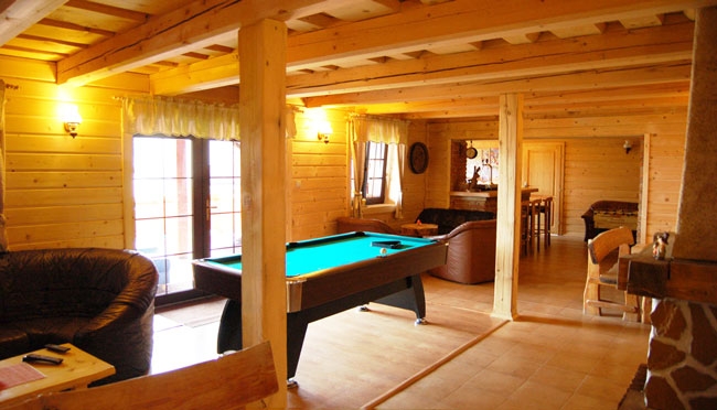 - spoločenská miestnosť s krbom, rozkladací gauč (môže sa využiť ako prístelka pre 2 osoby) a SAT/TV