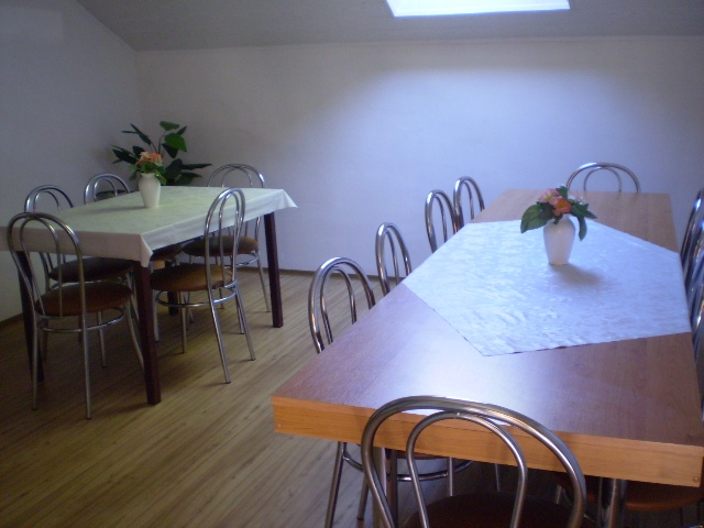 Každá izba má vlastnú kúpeľňu/ sprchovací kút a WC. K dispozícii je kuchyňa (chladnička, plynový sporák, mikrovlná rúra), spoločenská miestnosť, TV, rádio.