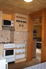 Kuchyňka: elektrický sporák, mikrovlnná trouba, lednice, rychlovarná konvice