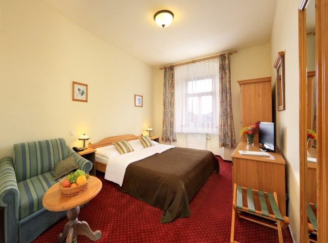 Pokoje Deluxe mají nadstandardní 3* vzhled. Samozřejmostí je vlastní sociální zařízení s koupelnou se sprchou a toaletou, miniledničkou a plochou televizí. Oproti standardním pokojům jsou Deluxe pokoje větší, vybavení je modernější a mají výhled na náměstí (pro hosty s lehkým spánkem nabízíme jeden Deluxe pokoj s výhledem na náš vlastní klidný parkovací dvůr).