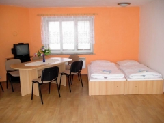 3x dvojlůžkový a 2 x 6ti lůžkový pokoj, sprcha, sociální zařízení, kuchyňka, vařič, varná konvice, lednice, mikrovlnná trouba, připojení na internet. Bezbariérový přístup.