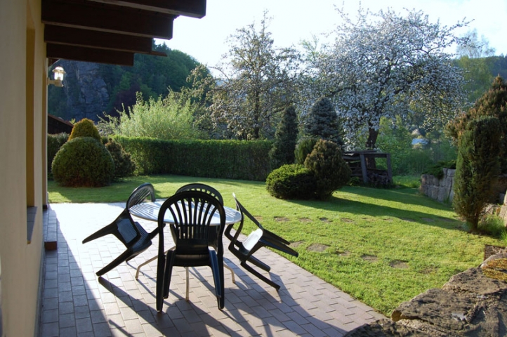 Posezení na zahradě pro oba apartmány, možnost úschovy kol. Parkování přímo u domu.
