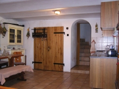 V přízemí sklepu se nachází vstupní vestibul s posezením pro cca 20 osob s krbem a WC. Tento prostor je možné použít i pro úschovnu kol nebo prostory pod penzionem, které jsou pro tyto účely vyhrazeny. V podkroví sklepu je kompletně vybavená kuchyně, barový stůl, sprchový kout a ložnice (6x lůžko popř. i možnost přistýlky, digi TV a skříň).