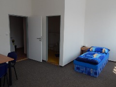 Pokoje - koupelna se sociálním zařízením, ložnice s TV. Pro ubytování na pokojích je k dispozici společná kuchyňka se stejným vybavením jako na apartmánech.