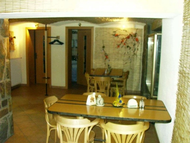 Další součástí budovy je pizzerie, která se nachází v suterénu penzionu.
