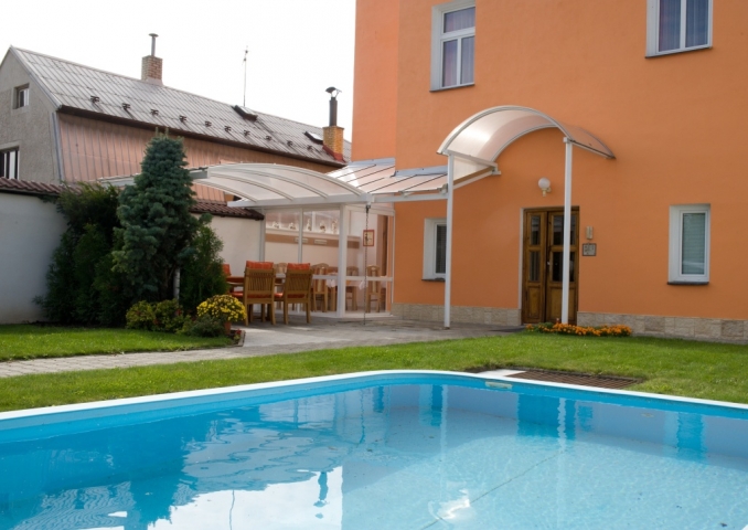 Hosté mohou využít zahradní posezení v pergole s možností grilování, venkovní bazén s lehátky na slunění.