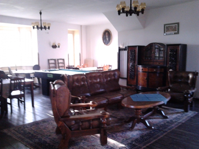 Knihovna a Vagon jsou dvě společenské místnosti,obě s krbem. Dřevěná veranda s přístupem pro všechny pokoje.