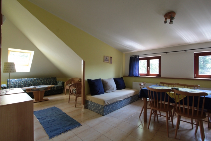 Jeden 4 lůžkový apartmán je bezbariérový a s balkónem.