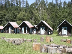 Ve dvou, tří a čtyřlůžkových chatkách. Sociální zařízení společné, na velmi dobré úrovni, teplá voda po celý den. Restaurace je v centru areálu. Chatky mají základní vybavení a to včetně lůžkovin. Ubytování je možné i v budově, která je využívaná při společných akcích jako ošetřovna, (5 pokojů a sociální zařízení).