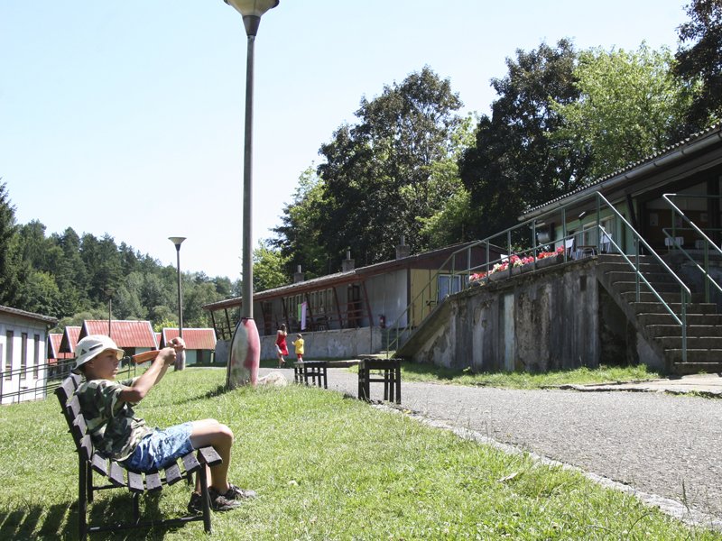 Letní tábor s řadou chatiček a přilehlým komplexem budov nacházející se v malebném údolí přímo na řece Sázavě asi 15 km od Kutné Hory.