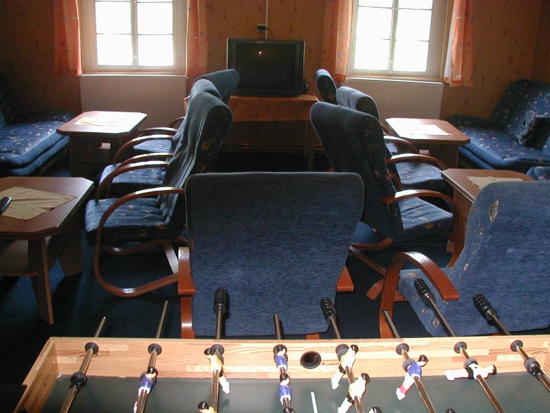 Společenská místnost je vybavena televizí a pohodlnými sedacími soupravami. Pro děti i dospělé společenská místnost nabízí nejen možnost příjemného posezení, satelit a DVD, ale je zde k dispozici i mnoho hraček pro děti různého věku od domečku přes stolní fotbálek až po odrážedla a traktůrky.